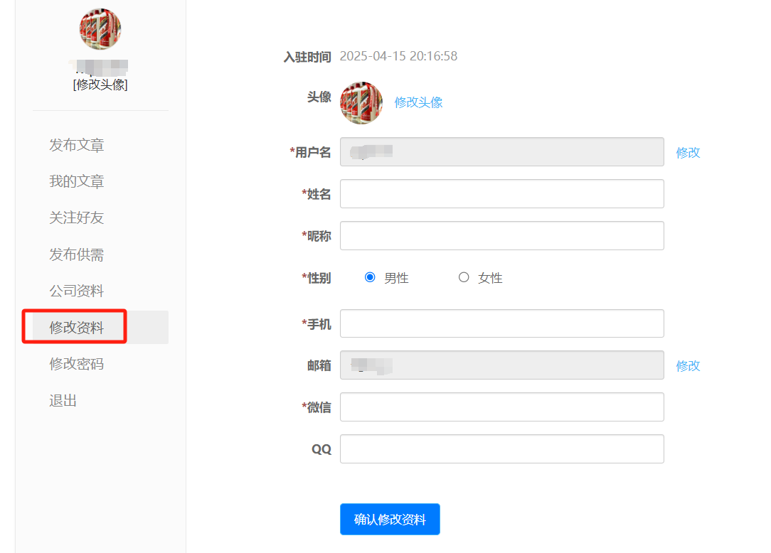 登录之后,点击左上角“进入会员中心”,完善个人资料,头像一定要填哦~