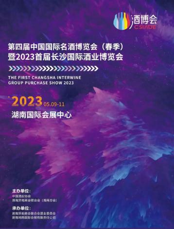 由中国酒业协会、湖南异地商会联合会(湘商总会)主办的第四届中国国际名酒博览会(春季)暨2023首届长沙国际酒业博览会(以下简称“长沙酒博会”)将于2023年5月9日-11日在湖南国际会展中心(芒果馆)举办。