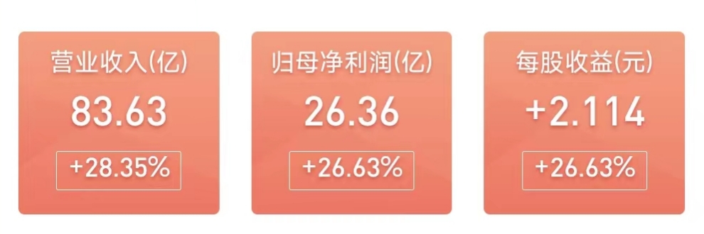 10月30日,江苏今世缘酒业股份有限公司(以下简称“今世缘”)发布2023年第三季度报告,报告数据亮眼:公司1-9月实现营收83.63亿元,同比增长28.35%;实现净利润26.36亿元,同比增长26.63%。其中,三季度实现营收23.94亿元,同比增长28.04%,实现净利润5.86亿元,同比增长26.38%。